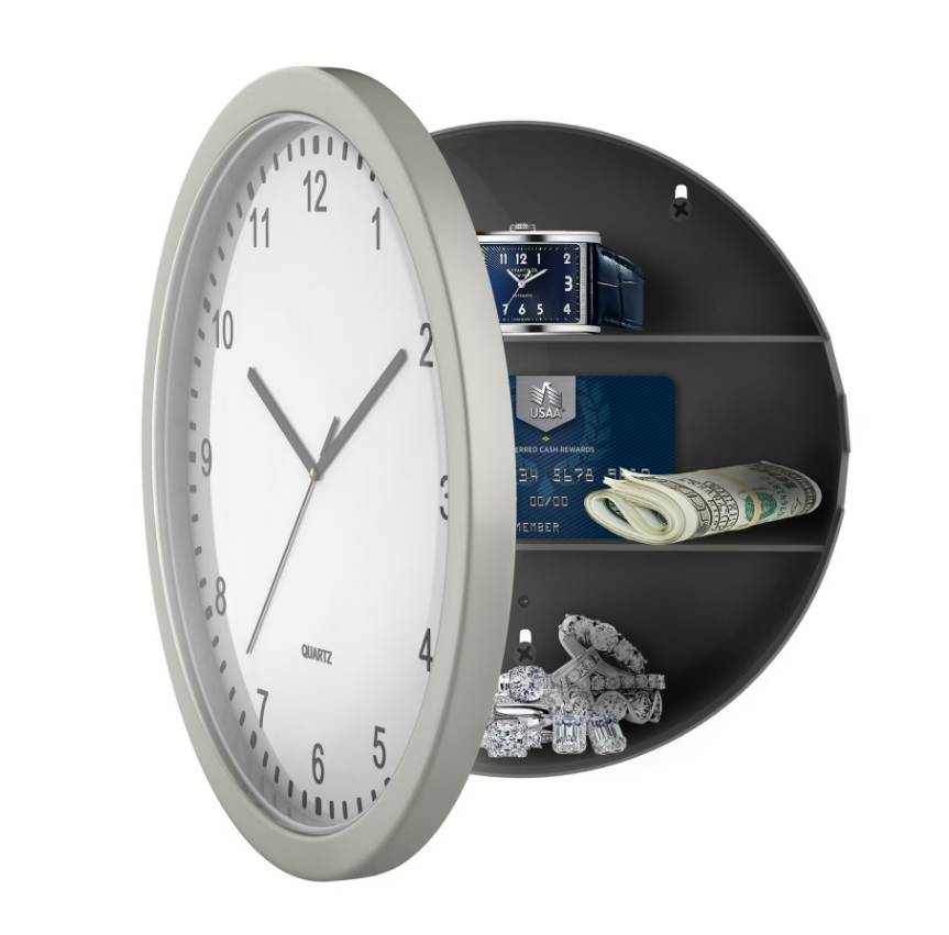 A DISGUISED SAFE HANGING ON YOUR WALL: Whether you're just on the lookout for cool stuff for your room, in need of a small wall clock, or you're really in need of a mini safe, the Primo Supply Wall Clock with Secret Compartment is perfect. Because behind the face of our fully functioning wall clock is a secret shelf organizer made with just enough space to be your new jewelry box, money safe or stash container