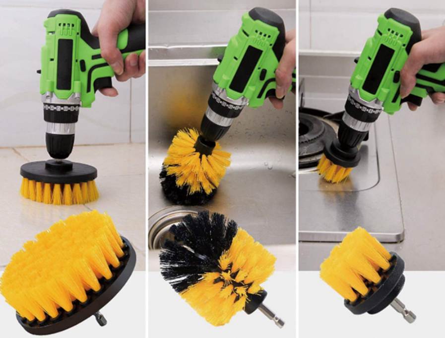 The brushes feature a 1/4-inch hexagonal shank (2.5 cm long) designed for quick-change chucks.