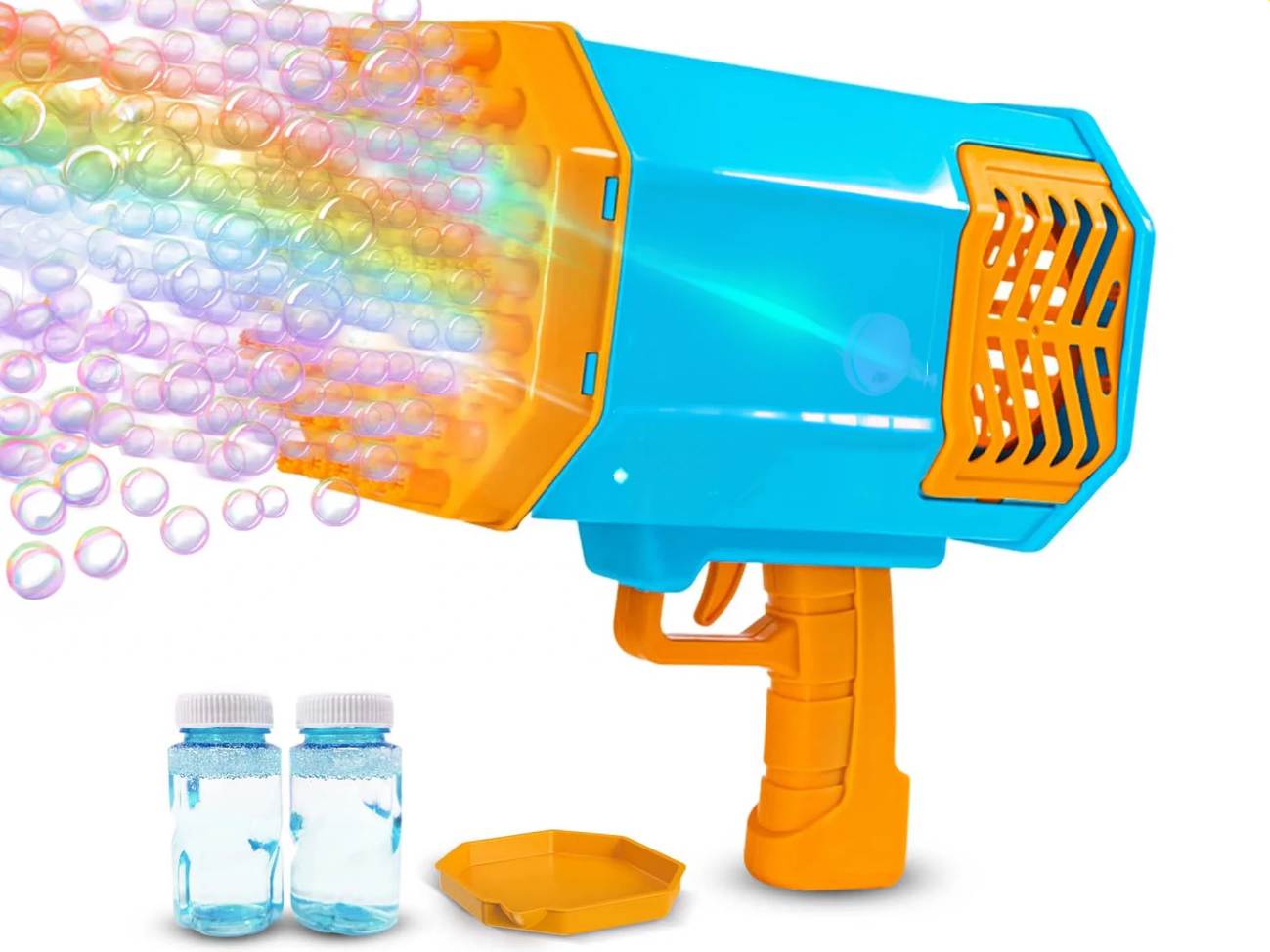 Relive your childhood with the ultimate Bubble Gun Bazooka! Forget those old-fashioned bubble wands—with this amazing bazooka, you can blast hundreds of bubbles into the air all at once. But that’s not all! This bubble-blowing machine features cool light effects that turn bubble-blowing into an experience like no other!