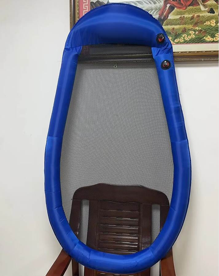 Armrests and head pillow are inflatable, they have two valves and are easy to inflate manually